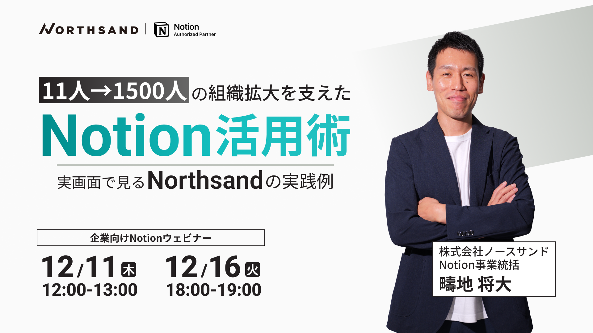本ウェビナーは、2025年9月に開催し好評だった「ノースサンドのNotion活用ウェビナー」のブラッシュアップ版として、当社のNotion事業統括・疇地が実際の画面をお見せしながら、リアルな運用の裏側を公開します。