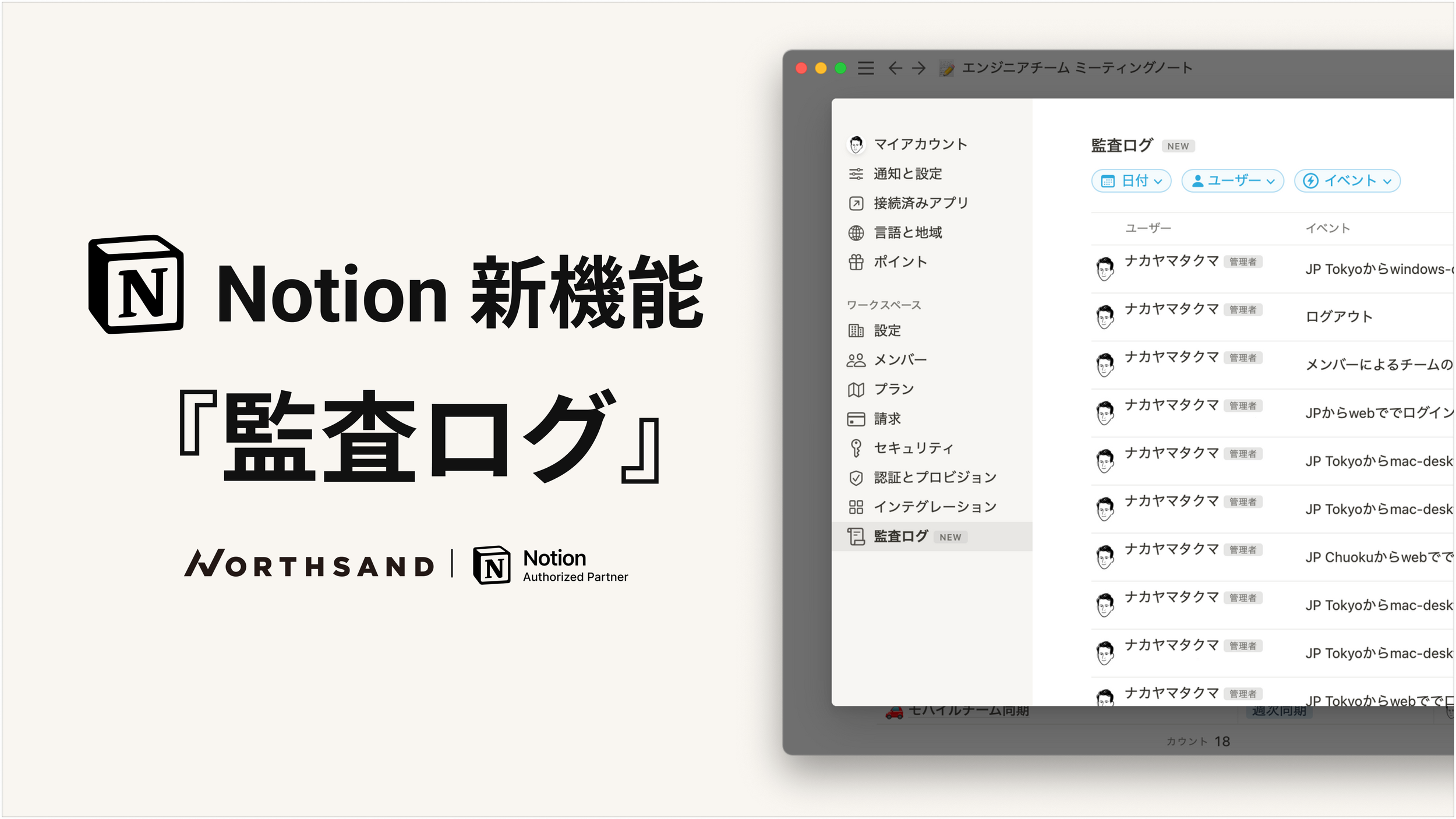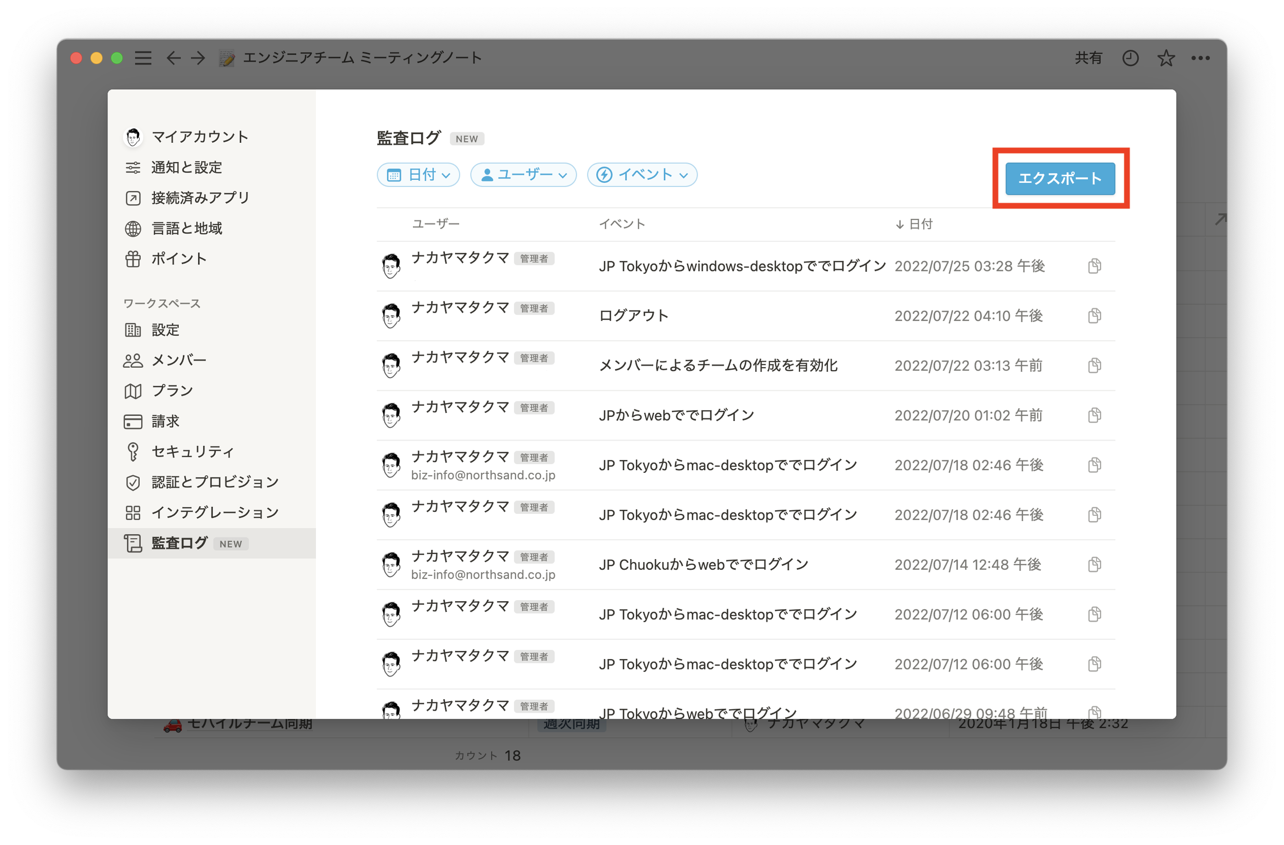 「監査ログ」の機能は、Notionのセキュリティ対策機能のなかでも重要度の高いものです。