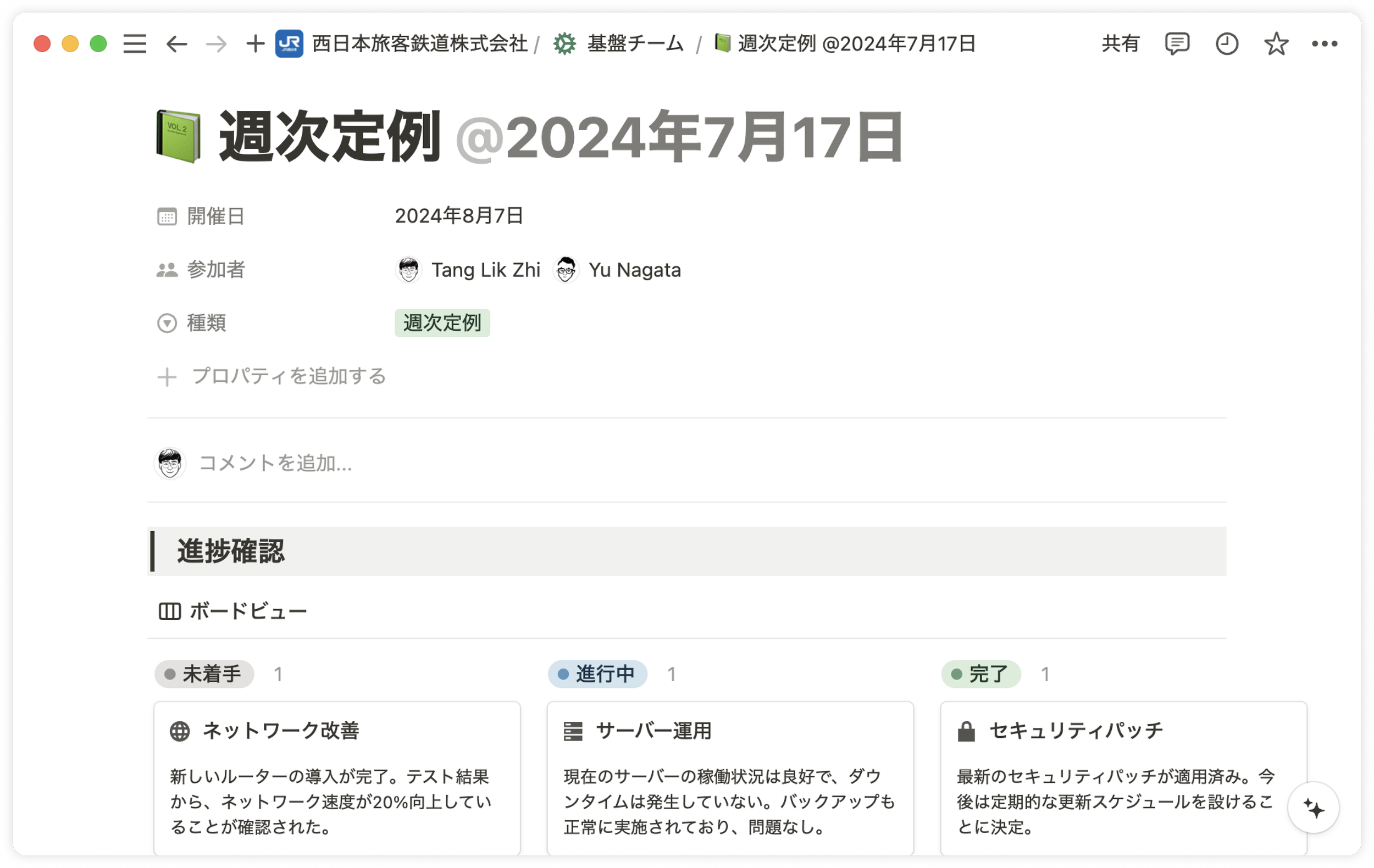 西日本エリアの旅客鉄道等を運営するJR西日本。その中のデータ分析組織では、Notionを導入しています。それまでは複数のオンラインツールで資料共有されていたため、情報の検索性に課題がありました。また、資料の内容がぱっと見でわかりづらく、進捗管理にも影響が。