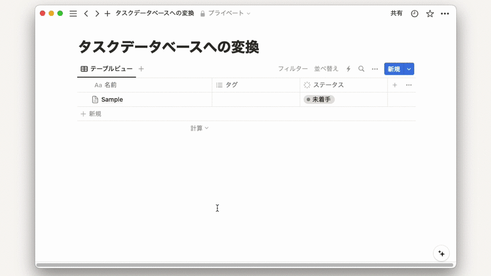 ホームを最大限活用するためには、タスクデータベースの設定が鍵となります。 各プロジェクト、タスク管理表のデータベースは以下の手順でタスクデータベースに変換できます。