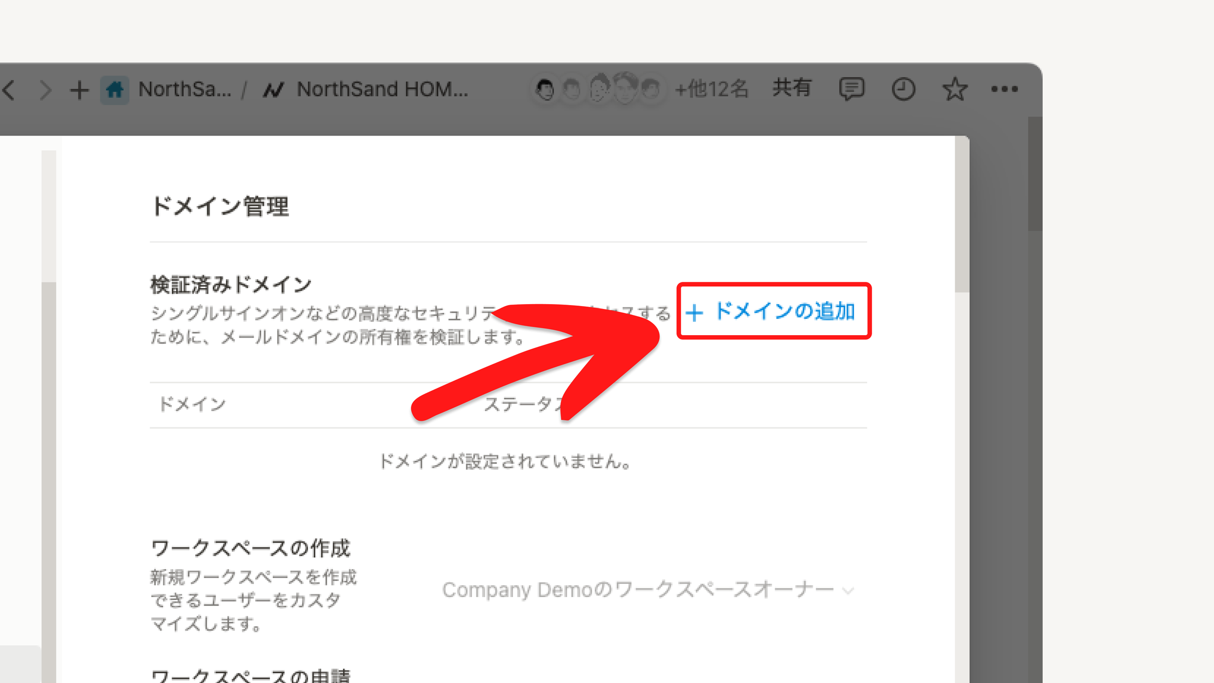 「+ドメインの追加」