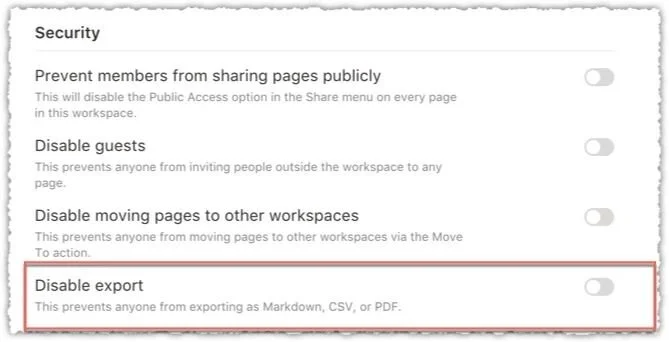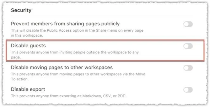 ワークスペースを外部公開できるようにするか? Prevent Members from sharing pages publicly