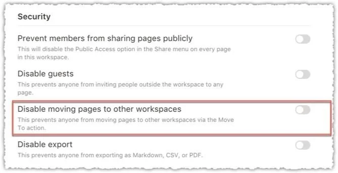 ページを外部のワークスペースに移動できるようにするか? Disable moving pages to other workspaces