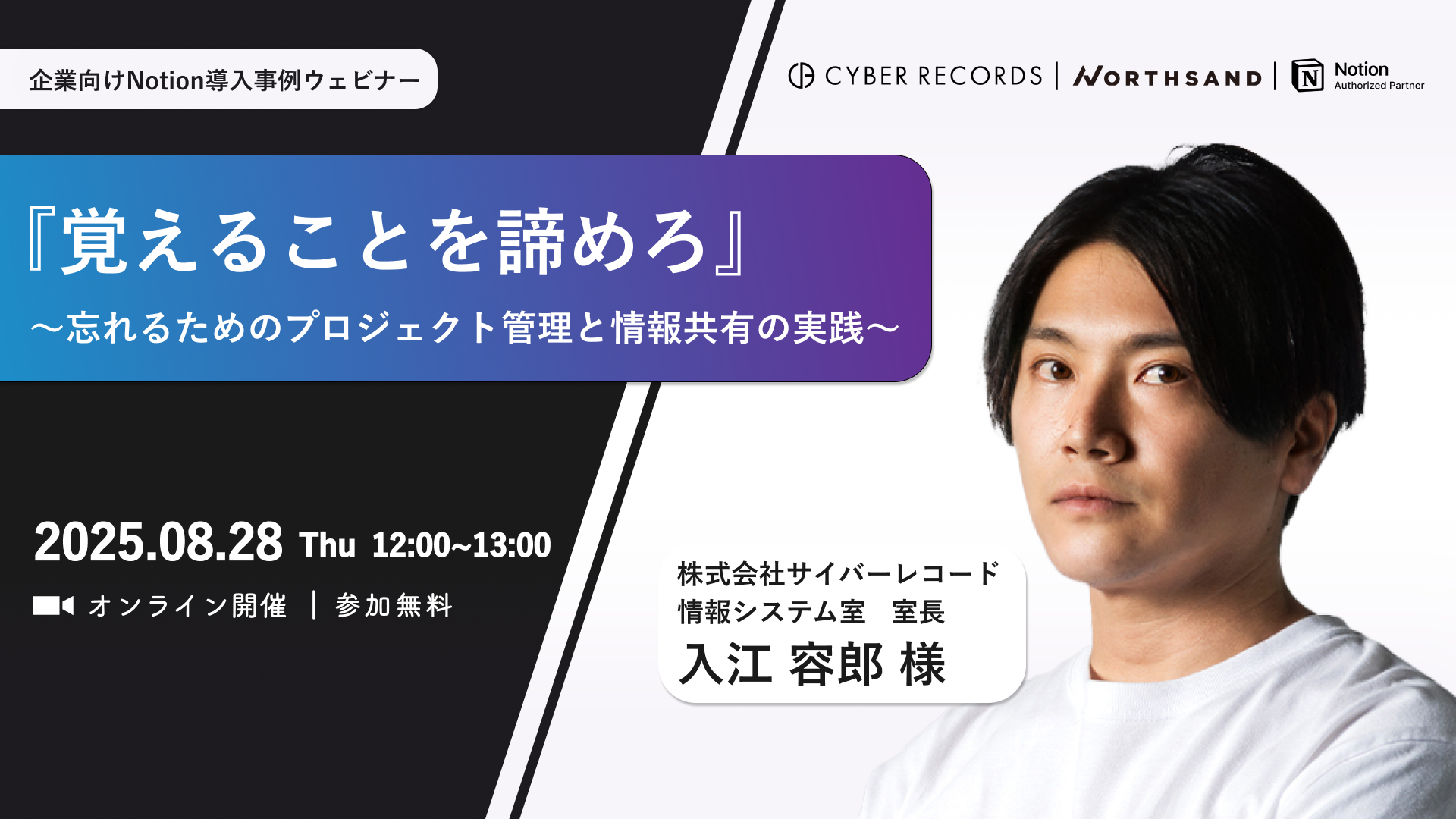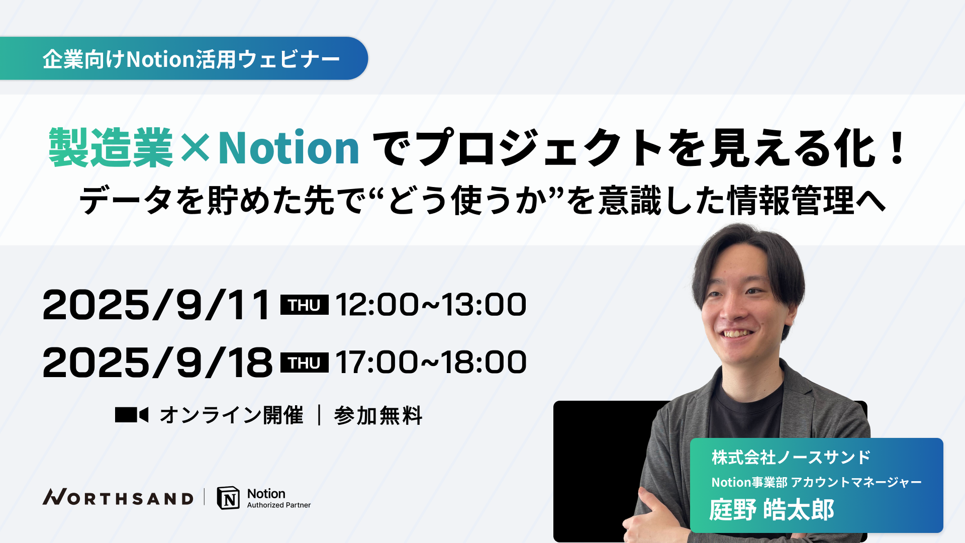 Notion Labs Japan合同会社をお招きし、最新のNotionの機能についてお話しいただきます。さらに、NorthSandにおけるNotionの導入プロセスと実践的な活用事例をご紹介します。