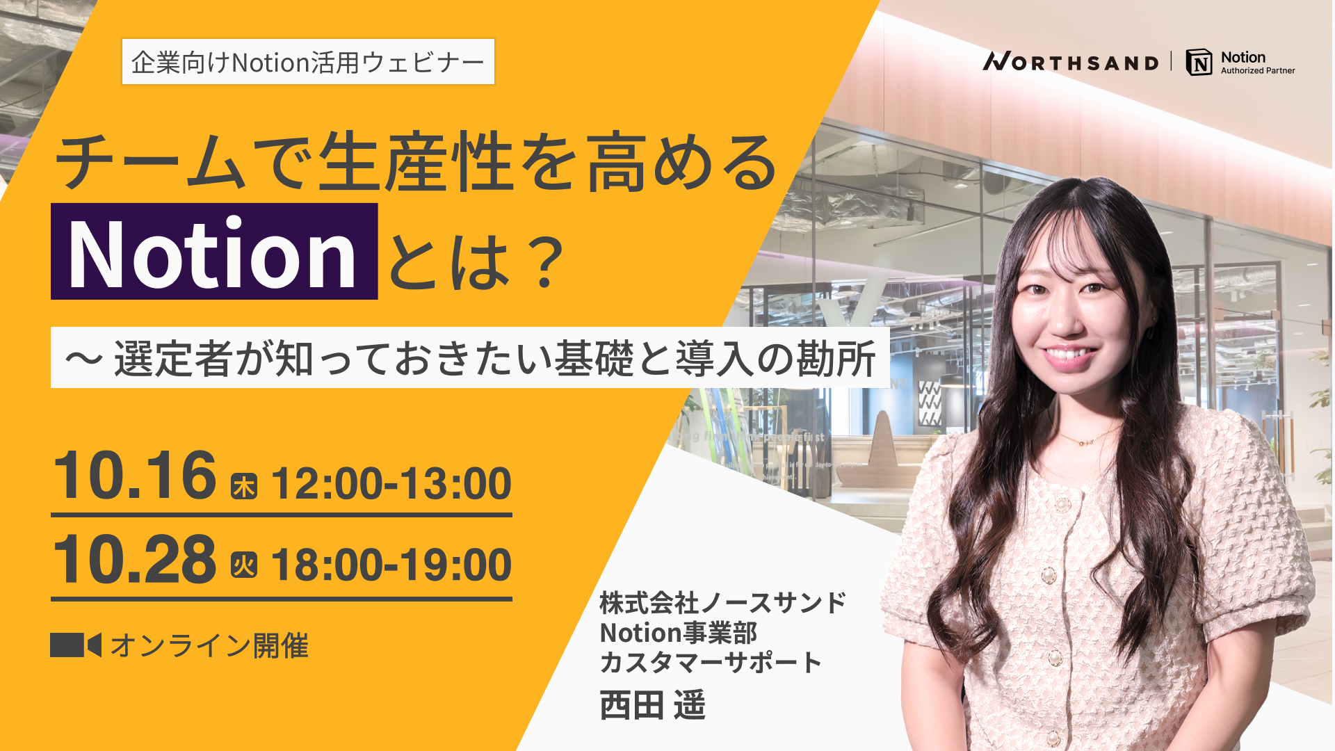 「情報がバラバラで引き継ぎが難しい」「担当者がいないと業務が止まる」といった課題を抱える企業・チームに向けて、Notionを活用したナレッジ管理の実践方法をご紹介するウェビナーを開催します。